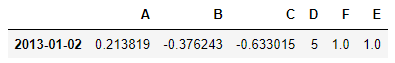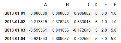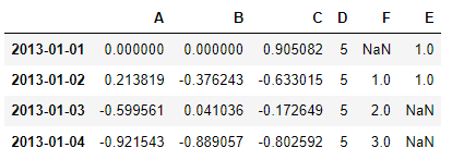 df1 = df.reindex(index=dates[0:4], columns=list(df.columns) + ["E"])