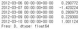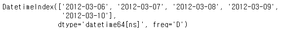 rng = pd.date_range("3/6/2012 00:00", periods=5, freq="D")