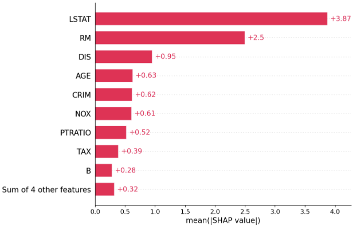 표준 막대 플롯을 얻기 위해 각 변수에 대한 SHAP value 절대값의 평균을 사용할 수도 있어요.